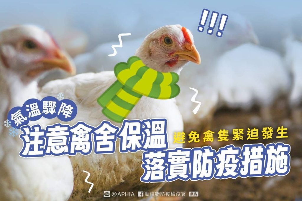 請養禽業者注意✅做好禽舍保溫及通風管理✅定期維護禽場防鳥設施功能正常運作✅落實人車進出管制✅落實消毒、進入禽舍更換衣、鞋及手部消毒等生物安全管理措施 每日自主觀察禽隻健康狀況,若發現異常主動通報 #當地動物防疫機關或撥☎️0800-761-590 通報 You Might Also Like ★113年農民學院- 禽類動物疾病及衛生防疫訓練進階班報名 農業部獸醫研究所 2024 年 6 月 5 日 2025第14屆亞洲動物保護大會Asia for Animals 2025 年 7 月 12 日 溫馨提醒:樺加沙颱風最快從周日(21日)起臺灣就會感受到外圍環流影響 2025 年 9 月 22 日