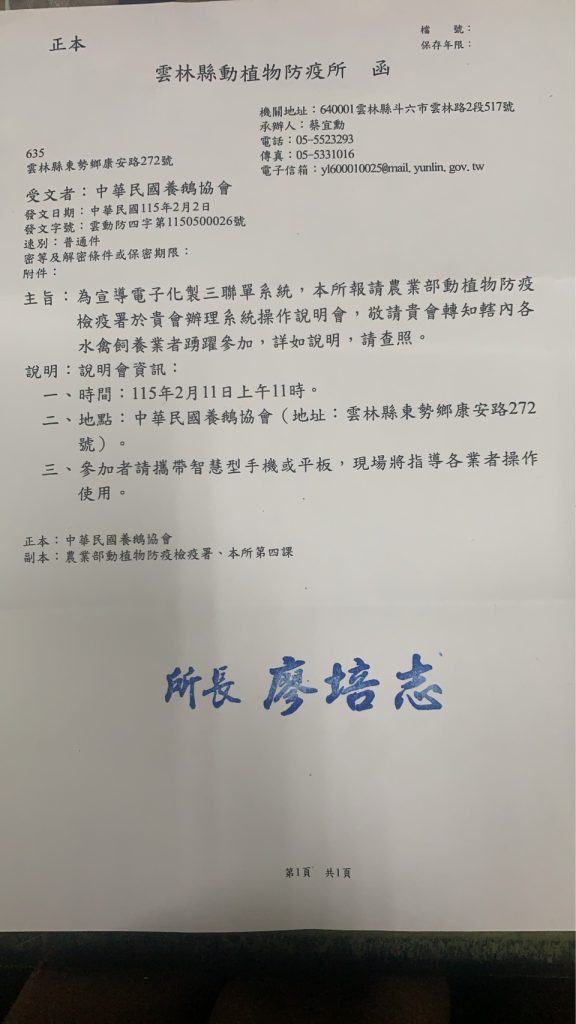 You Might Also Like 112年度生石灰消毒申請流程 2021 年 1 月 9 日 113年度生石灰消毒申 請最後一季請把握消毒資源喔! 2024 年 10 月 15 日 臺南場2月25日 農業科技產業化資源聯合說明僅此一場 2025 年 2 月 5 日